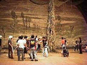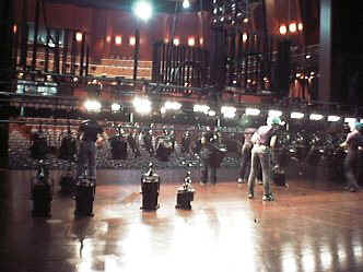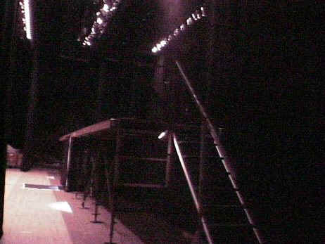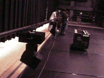 照明のシュート: 舞台上のセットが全てそろったところで、照明のシュートが行なわれます。