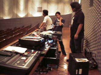 サウンド・チェック: 照明、舞台のセットが整い、今度は音響のセット、調整が行なわれます。