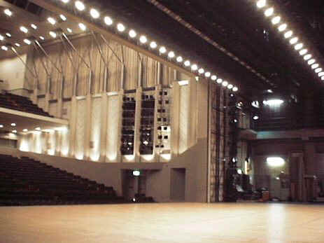 モニタースピーカやマイクが袖や舞台上にセットされ、サウンド・チェックが行われます。