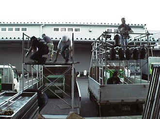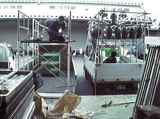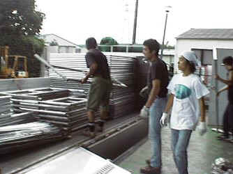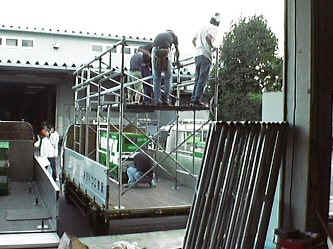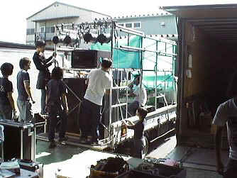 | 荷台いっぱいにセットが組まれます。 | ![]()