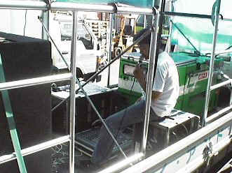| よさこい祭りは、‘地方車(じかたしゃ)’と呼ばれるトラックが使われます。 荷台には照明と音響機材とがセットされ、 さらに、音頭をとる人たちが乗り込み、踊り手を先導します。 準備は、地方車を作ることから始まりました。