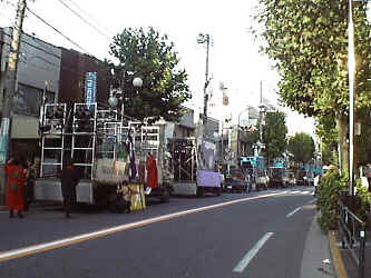 | 沿道先にずらりと並んだ地方車。 出発を待つばかりです。 |