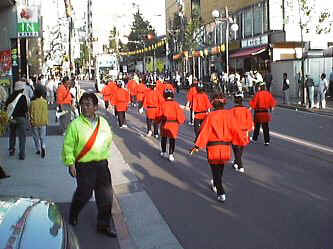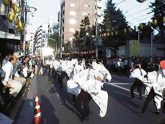 ‘よさこい’のパレードがはじまりました。 高田馬場駅をはさんだ、 早稲田通り沿い、約1.2キロの商店街を 時間をかけて進みます。 |